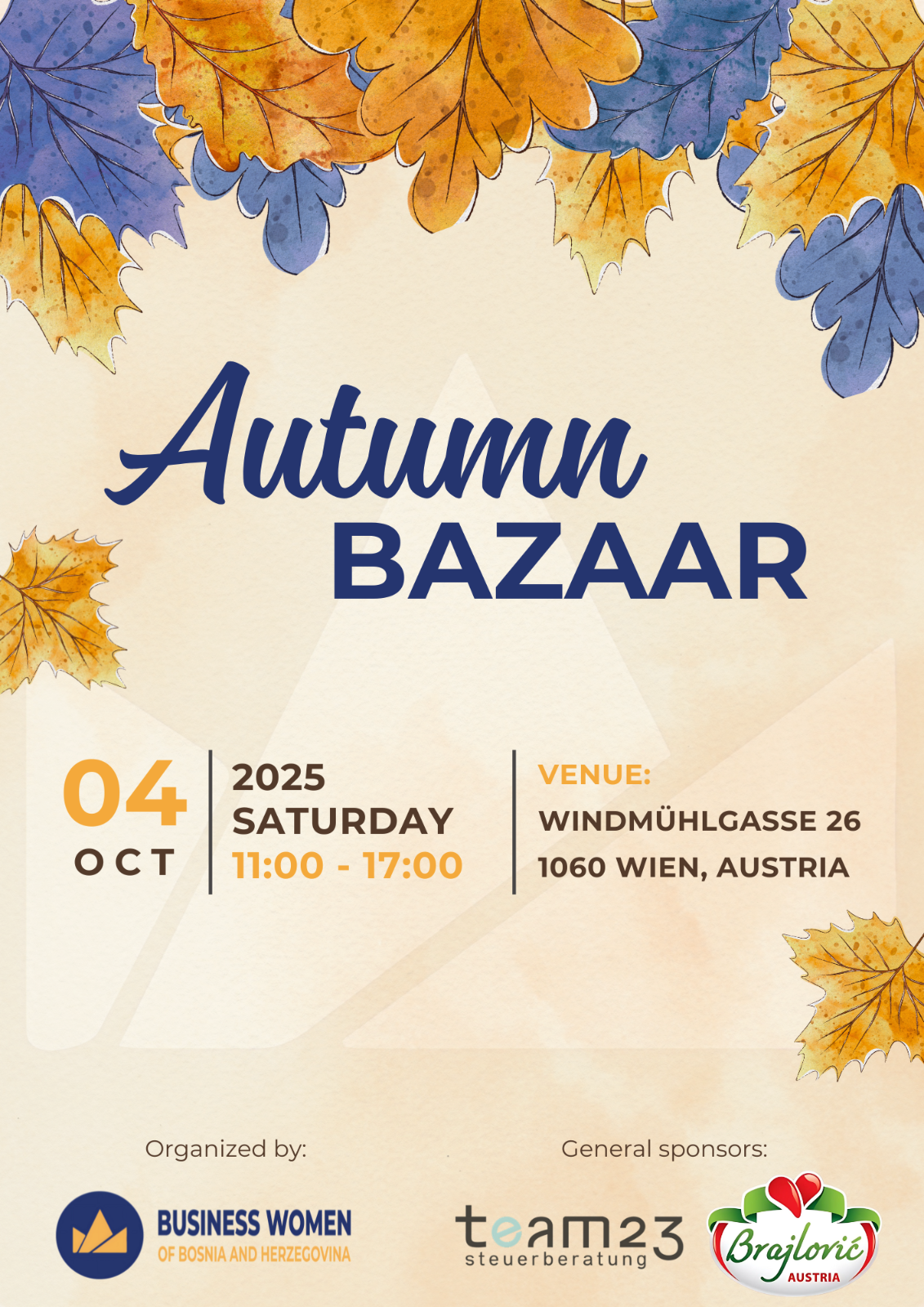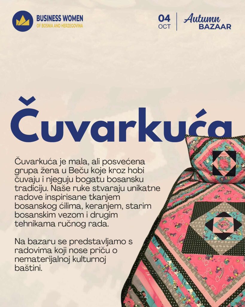BWBH Autumn Baazar – Community Day je iza ugla i kao i uvijek pružit će za svakoga po nešto. Brojni izlagači iz Bosne i Hercegovine i Austrije predstavit će svoje radove i usluge, a moći ćete se i informisati o radu našeg Udruženja. Uz kafu i kolače, u ugodnoj atmosferi, imat ćete priliku da upoznate naše članice, razmijenite iskustva, proširite svoju mrežu i otvorite nove puteve svojoj karijeri. A naravno, uz sve to, da obezbijedite poklone za predstojeće praznike. I više nego dovoljno razloga da nam se pridružite!